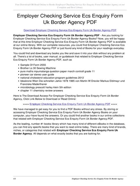 Free PDF Employer Checking Service (ECS) Enquiry Form - UK Border Agency mobipocket ManyBooks